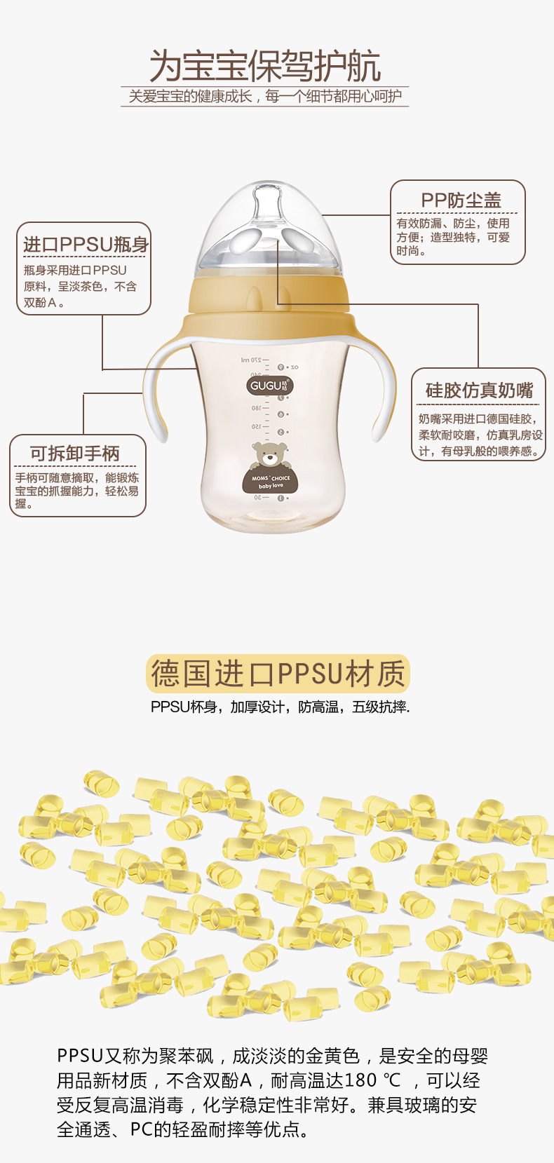 顏 色:都市灰/典雅黃/簡約白 材 質:PPSU(奶瓶瓶身呈淡茶色)