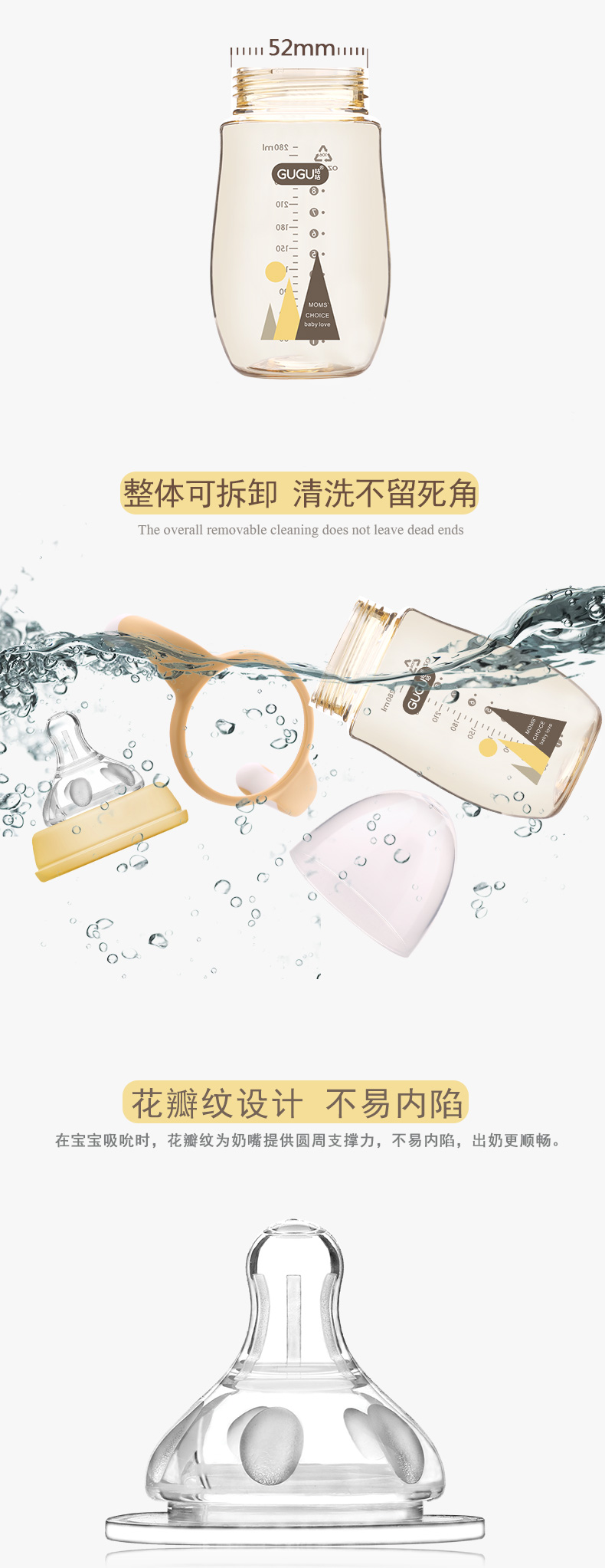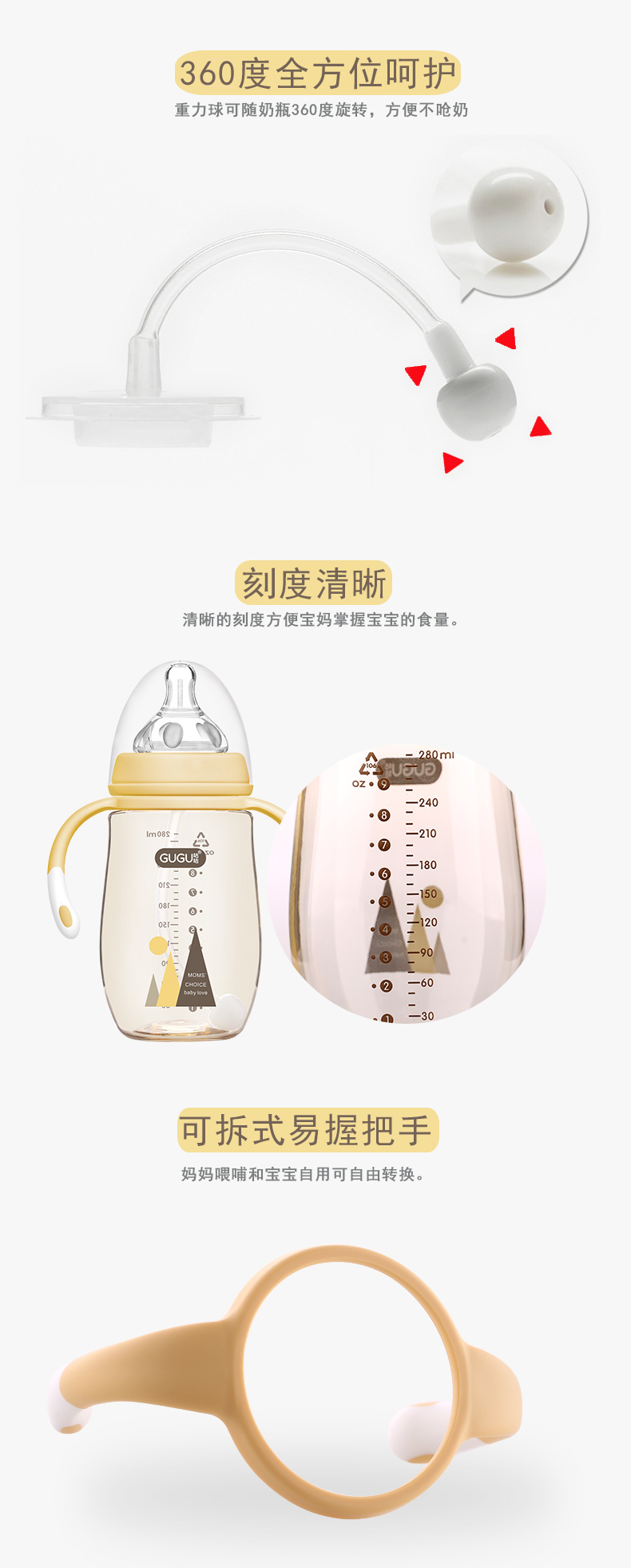 顏 色:都市灰/典雅黃/簡約白 材 質:PPSU(奶瓶瓶身呈淡茶色)